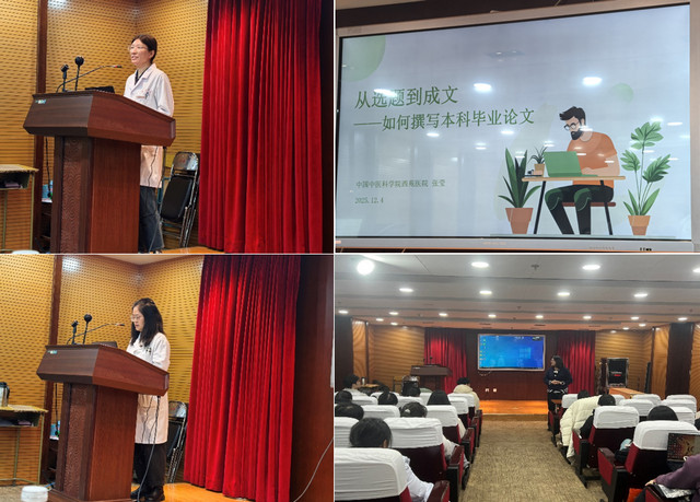 为进一步做好毕业论文撰写工作,提升论文整体质量,12月4日搜书吧 和西苑医院共同开展橘井·泉香系列论文写作讲座。讲座邀请西苑医院优秀本科论文指导教师张莹副主任医师,主题为“从选题到成文-如何撰写本科毕业论文”。张老师从选题、文献查阅、正文撰写、写作规范等角度进行剖析讲解。搜书吧 教办李玲玲老师从论文系统需提交的文件清单、毕业实习过程中需注意的问题等方面与学生进行了深入细致的交流,并对学生提出的问题一一进行解答。