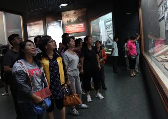 2014912日,基础医学院教师党员和学生党员在党总支书记李峰同志和副书记范璐同志的带领下,来到位于北京丰台区卢沟桥畔宛平城内的中国抗日战争纪念馆。中国人民抗日战争纪念馆,是全国唯一一座全面反映中国人民抗日战争历史的大型综合性专题纪念馆。是国家一级博物馆,也是全国优秀爱国主义教育示范基地。那些珍贵照片、重点文物、雕塑、油画、景观等展品,全面客观再现了中国人民14年抗战历程,着力展现了抗日战争胜利的伟大历史意义和在世界反法西斯战争中的重要地位,以及中国共产党在全民族团结抗战中的中流砥柱作用。