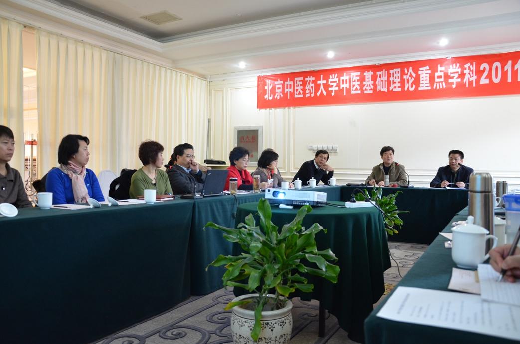 会议分两个阶段进行。首先由基础医学院副院长贺娟,代表本学科做了2011年中医基础理论重点学科年度总结报告。报告指出,中医基础理论重点学科以国家973计划、国家自然科学基金以及多项项目为依托,打造了两支以知名教授为学术带头人、以优秀中青年专家为主体的创新研究团队;通过主办多次学术交流会议、申报教材申报主编权,扩大了我校中医基础理论重点学科在全国中医药行业内的辐射影响力;凭借优秀的科研成果孵化能力,荣获6项国家级、部级、校级科研奖项,取得3项中华人民共和国国家版权局著作权,发表100余篇(包括SCI(E)5篇)高水平科研论文,出版40部学术类、科普类著作,成绩斐然。然后,学科各方向学术带头人——高思华校长、郭霞珍教授、孟庆刚教授、倪诚教授、翟双庆校长助理,分别介绍了本研究方向的年度工作进展和明年工作计划。