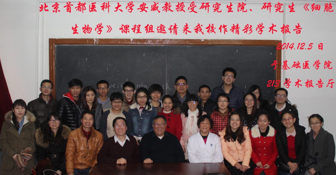 基础医学院研究生《细胞生物学》课程组赵宗江教授邀请,北京首都医科大学基础医学院院长、细胞生物学系主任、肝脏保护与再生调节北京市重点实验室主任、教授、博士生导师安然教授来我校做关于“肝干细胞在肝损伤修复中的作用与机制”的讲座。讲座在基础医学院213会议室举行,由赵宗江教授主持。参加人员主要是《细胞生物学》课程组博士生和硕士生学员及其他同学和我校老师。