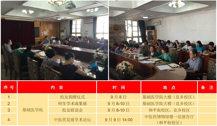 基础医学院校庆工作从年初开始准备筹划,至今已历时数月。基础医学院作为搜书吧 历史最悠久,成立时间最长的学院,建校60年来累计已毕业的本科班级就有180多个,硕士博士毕业班60多个。基础医学院校庆工作由学院领导班子牵头,院综合办公室、各教研室协调协作,通过学院学生会、研究生会和工会系统招募的100余名师生志愿者也投入到校庆各项活动中,统一安排校庆活动、校友接待等工作事宜。本次动员会在校庆日10天倒计时节点上召开,明确了任务,鼓舞了人心,学院上下聚力,全力迎接60周年校庆。