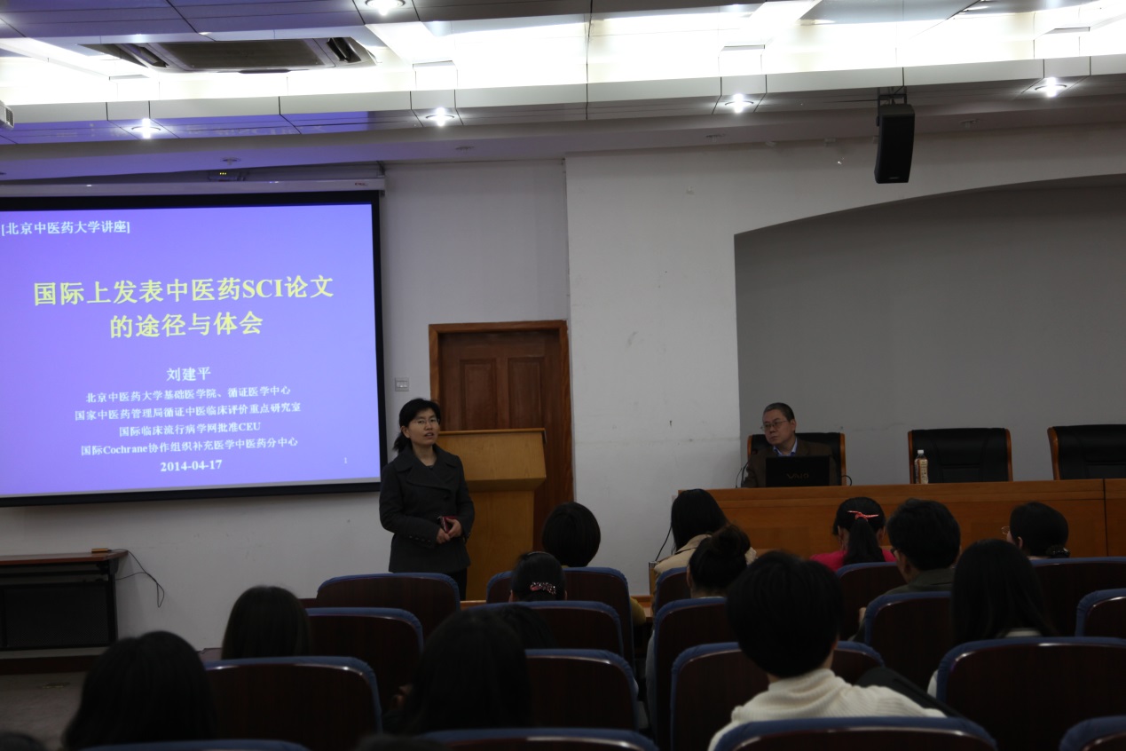 4月17日下午,基础医学院在中医药博物馆一楼报告厅举办SCI论文写作培训系列讲座之三——“国际上发表中医药SCI论文的途径与体会”。讲座邀请了刘建平教授主讲,基础医学院赵琰副院长主持并做了介绍。
