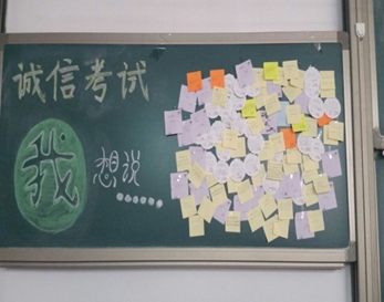班会首先由学习委员对我班倡议诚信考试的活动成果进行分享。在元旦期间,我班同学以不同方式、各种渠道倡议周围的同学们诚信考试。不同班级、不同年级、不同专业的同学们积极响应,纷纷写下“诚信考试宣言”,汇集成一面代表诚信的“宣誓墙”。同时,她重申了诚信考试重要性与必要性,强调了违纪后果的严重性,并组织大家签署诚信考试承诺书。