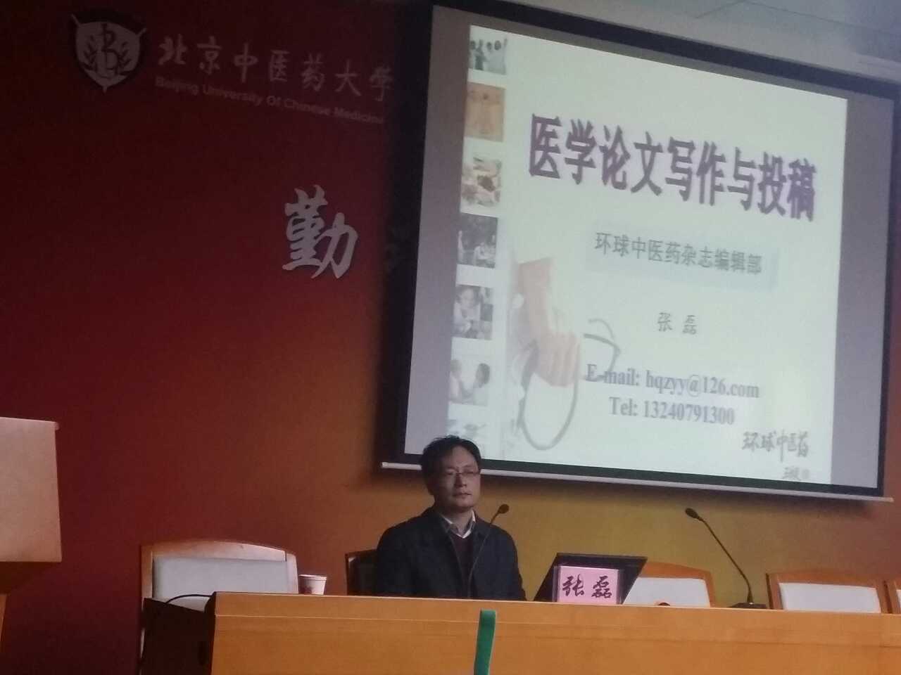 第十六届学术节基础医学院分会场的最后一场讲座在逸夫博物馆二层报告厅拉开帷幕,《环球中医药》编辑部张磊主任为基础医学院师生做了关于“医学论文写作与投稿”的讲座,从一个中医期刊编辑的角度介绍了医学论文写作与投稿的方法,讲座由赵琰副院长主持。
