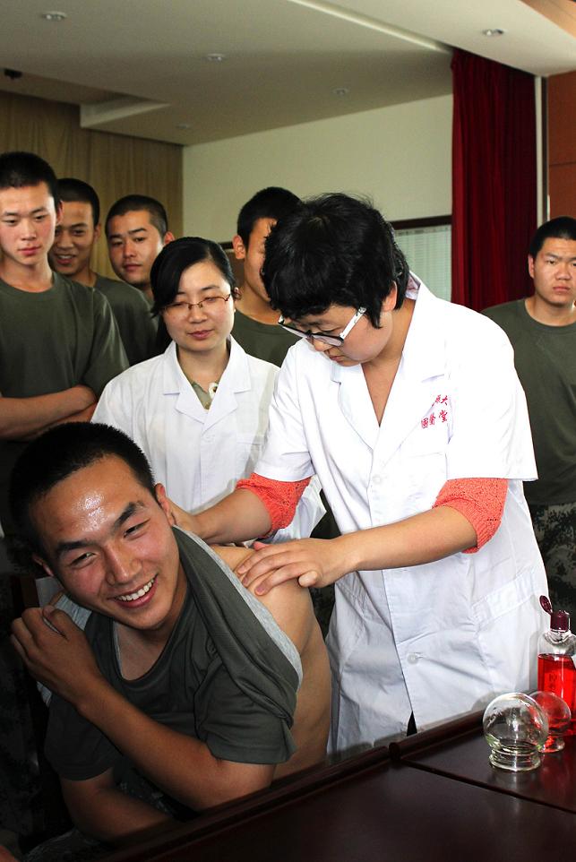 团队到达大岭村后,支部书记张红玉老师首先带领团队参观了承兴密抗日联合县政府旧址,学习了当地抗战史,全体党员重温入党誓词,受到了一次生动的革命传统教育。带着对大岭山人民的崇敬之情,团队为村民开展了健康咨询义诊,同学们还为大岭村建立了中医健康养生知识宣传栏,同学们热忱的服务、耐心问诊和针灸治疗受到了当地村民的欢迎和好评。翌日,同学们前往驻北庄部队,宋昊��同学为300官兵举办了一场题为“夏季养生”的讲座,讲座结束后为官兵进行了体质问卷调查和健康问诊咨询活动,返校后同学们还将进行问卷分析,将结论反馈给部队,为部队训练和生活提供参考意见。此次红色1+1党支部共建活动共有二十多名在读博士参与,受到了大岭村村民和驻地官兵的鼓励与支持,同学们的实践技能和服务热情得到了他们的肯定。这次支部活动不仅锻炼了同学们的实践技能,而且提高了同学们的身心素质,开扩了视野,学到了新知识、新经验,收获良多。